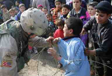 Sometimes songs are accompanied by videos or images depicting the brutality of the occupation: destroyed homes, prisoners in Abu Ghraib, dead children, women mourning their loved ones – and young people throwing stones at humvees and tanks (like the Palestinian youths) or chanting al-hausa to celebrate the success of an assault.